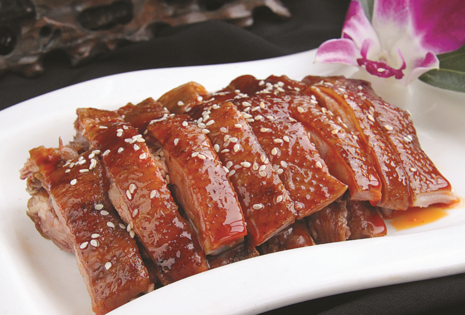 选用上等葵花鸭,经过特制的百年老腊卤汤料卤制而成。汤料的调制要求使用宣威火腿腊骨和百年老卤水合理搭配而成。产品特点:肥而不腻、色泽红亮、回味香浓。味型:腊香味。