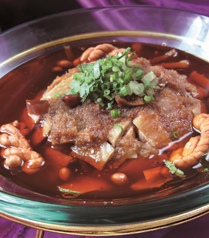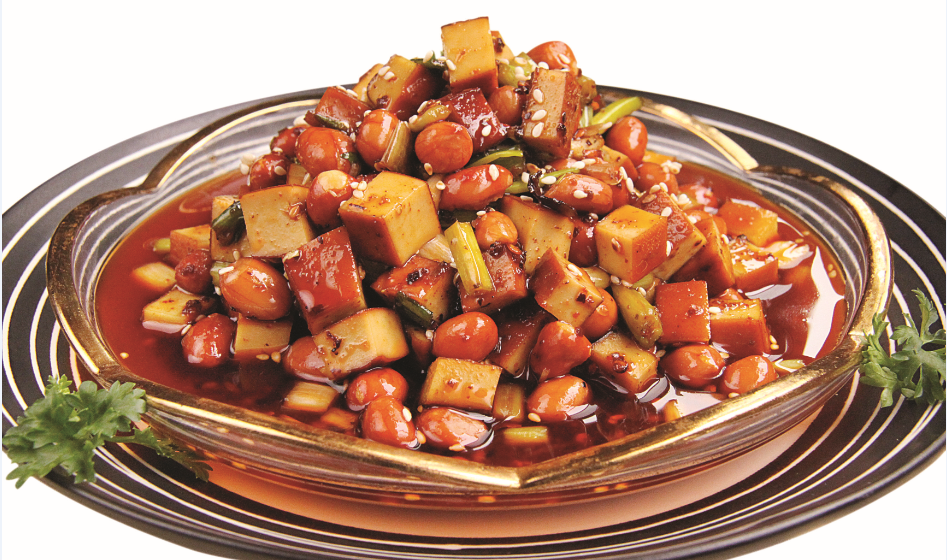 选用川南地区黄沙地的优质花生米,这种花生生吃干甜,经四方阁酒楼自压榨菜籽油油炸后,更是入口香脆,营养丰富。